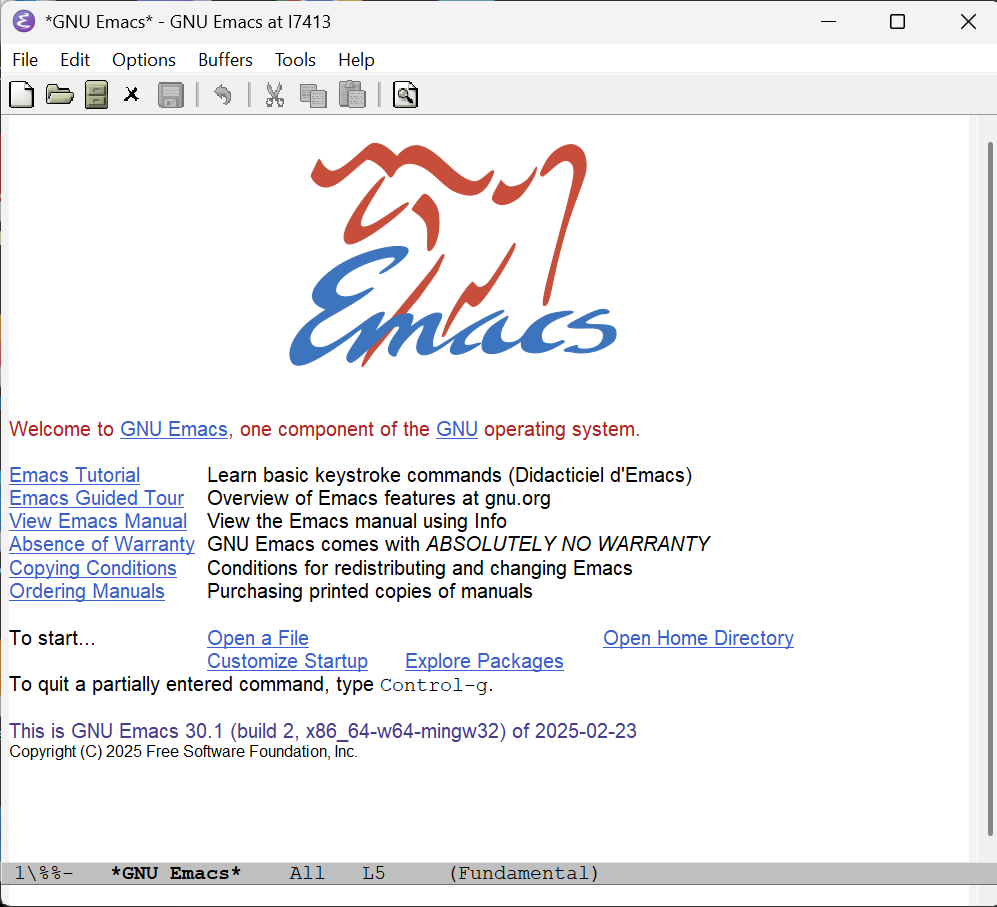 Let’s suppose we want to store configuration files in the same directory as Emacs (but we can do it elsewhere): C:\programs2\emacs-30.1\